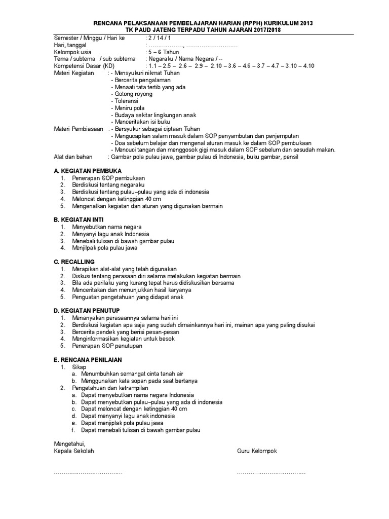 Rpph Tk B Smt2 Minggu 14 Negaraku Dasar Negara Bendera Pdf